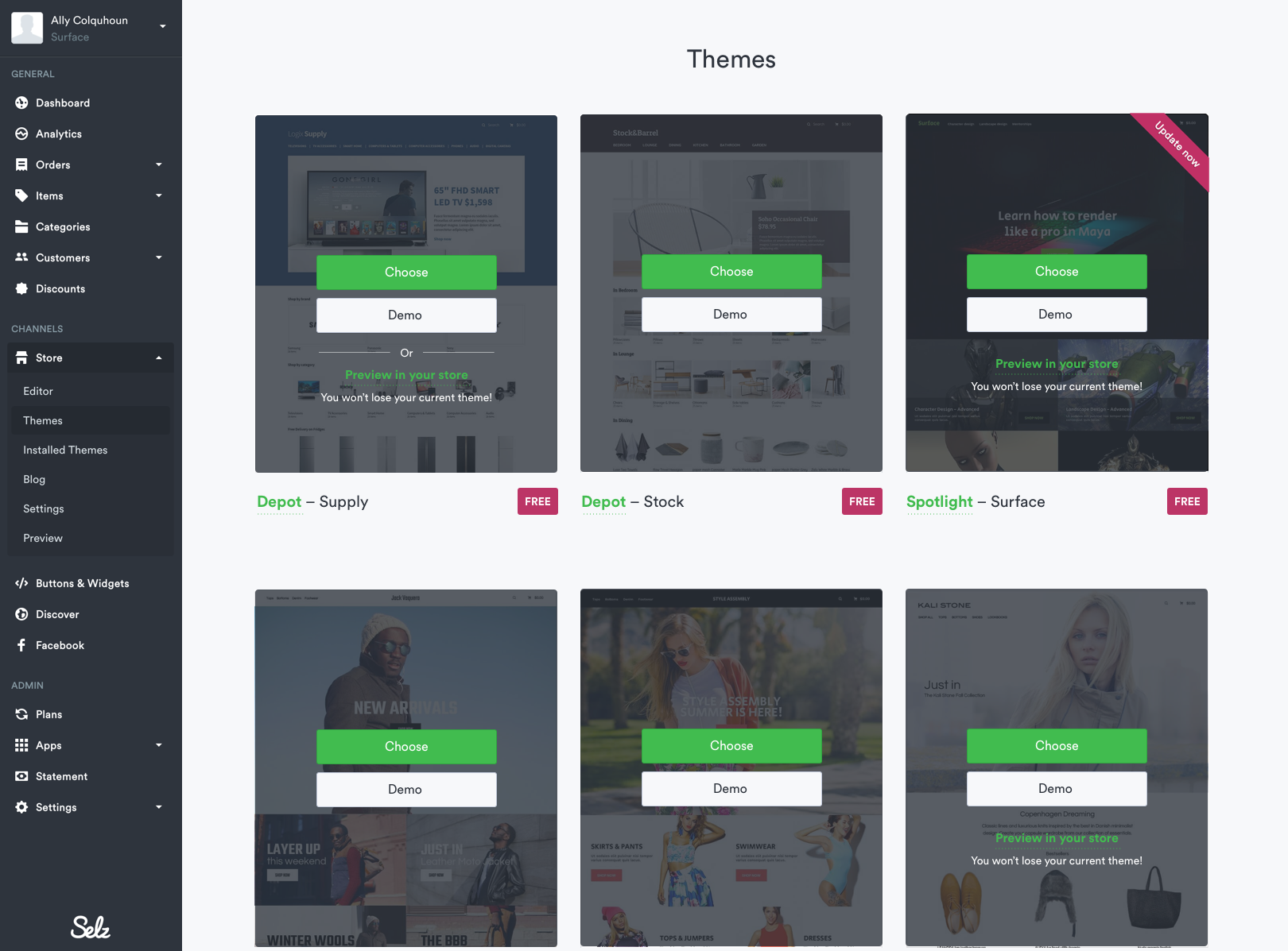 I'm responsible for designing most of the themes within the Selz theme store as well as the theme store itself that has both the acquisition and store admin versions.
